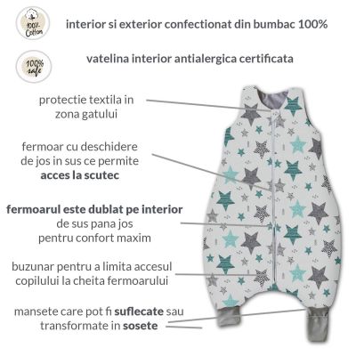 Despre Sac de dormit cu picioare pentru copii 2-4 ani Kidizi All Mint Stars