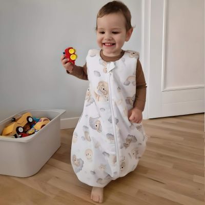 Saculetul de dormit Kidizi are o grosime medie si este captusit la interior cu vatelina moale antialergica care ii va tine celui mic cald atat timp cat temperatura din camera este intre 20 si 23 grade
