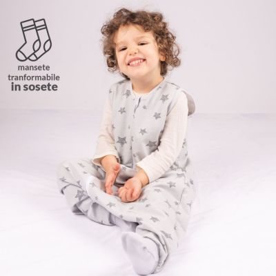 Despre Sac de dormit cu picioare pentru copii ajustabil 18-36 luni Kidizi Galaxy Grey, bumbac flausat, 1 tog