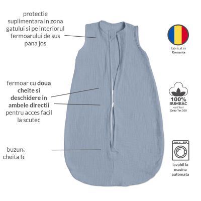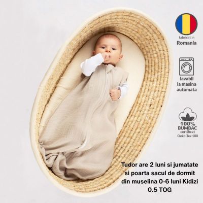 Despre Sac de dormit de vara pentru copii din muselina dubla 0-6 luni Kidizi jeans bumbac 100%, 0.3 tog