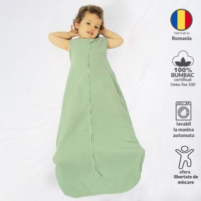 Despre Sac de dormit de vara pentru copii din muselina dubla 18-36 luni Kidizi mint, bumbac 100%, 0.3 tog