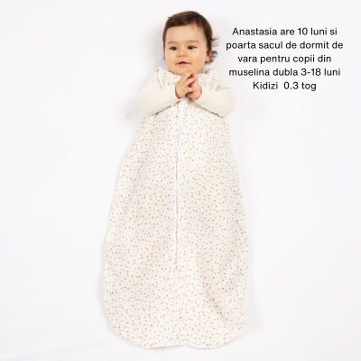 Despre Sac de dormit de vara pentru copii din muselina dubla 3-18 luni Kidizi grey pink, 0.3 tog