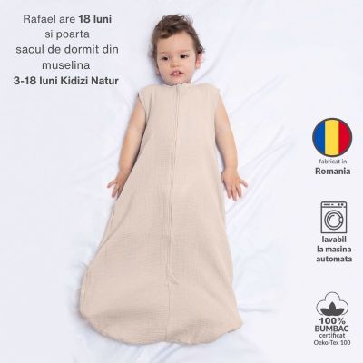 Despre Sac de dormit de vara pentru copii din muselina dubla 3-18 luni Kidizi natur, bumbac 100%, 0.3 tog