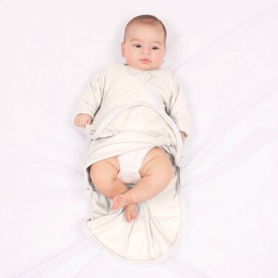 Saculetul subtire cu maneci lungi este prevazut cu mansete care pot fi suflecate usor cand bebelusul este mai mic.