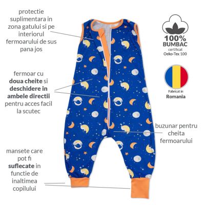 Despre Sac dormit copii de vara din bumbac cu picioare 18-36 luni Kidizi Space Cats, 0.5 tog
