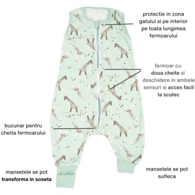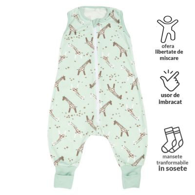 Despre Sac dormit copii de vara din bumbac cu picioare 6-18 luni Kidizi Giraffe, 0.5 tog, mansete transformabile in soseta