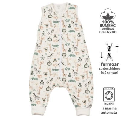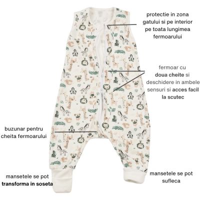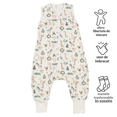 Despre Sac dormit copii de vara din bumbac cu picioare 6-18 luni Safari, 0.5 tog, mansete transformabile in soseta