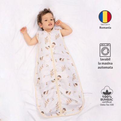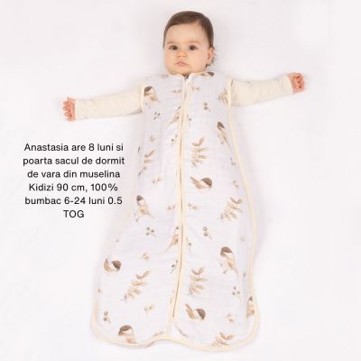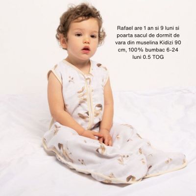Saculetul de dormit de vara Kidizi este confectionat din 2 straturi de muselina moale si se recomanda utilizarea lui in zilele calduroase ale anului cand temperatura depaseste 24 grade