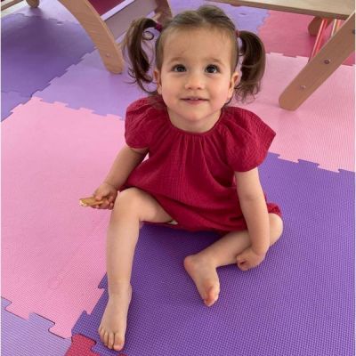 Despre Salopeta bebelusi din muselina cu maneca scurta si volanase Kidizi Freya chilli 12-18 luni