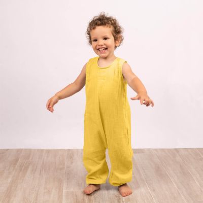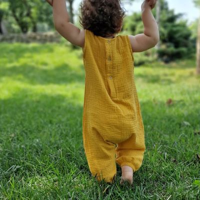 Cu un croi usor mai larg de tip oversized, salopeta de muselina Maty a avut ca si punct de plecare ideea de a crea o piesa vestimentara ce poate fi folosita o perioada cat mai lunga de timp atat de fetite cat si de baietei.