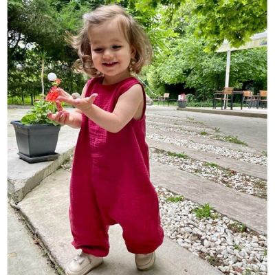 - desi pantalonii sunt lungi si din muselina salopeta este ideala in zilele mai calduroase - la nevoie cu o bluzita peste poate fi folosita si primvara/toamna.
