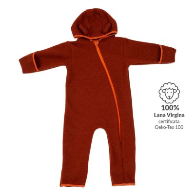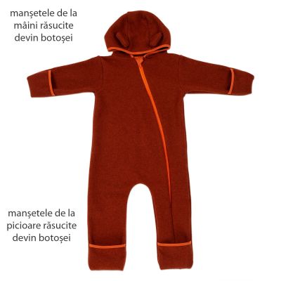Despre Salopeta overall din lana fleece Kidizi Teddy Terracotta 6-18 luni, prevazuta cu gluga si mansete transformabile in manusi