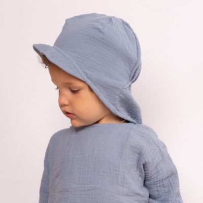 Despre Sapca pentru copii din muselina cu cozoroc si protectie gat Kidizi Maitre Jeans 1-3 ani