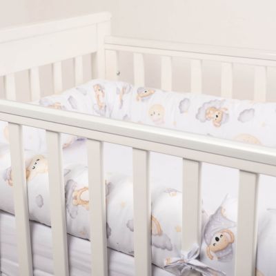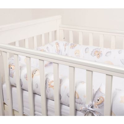 Setul include 2 aparatori de 180 cm, prevazute cu un snur la ambele capete, astfel incat se pot uni si impreuna acopera toate lateralele unui patut de dimensiunea120x60 cm