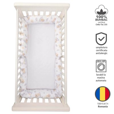 - Lungimea este perfect suficienta pentru a acoperi toate lateralele unui patut de dimensiunea120x60 cm, nu ocupa mult spatiu, copilul se va bucura si de siguranta si de spatiu.