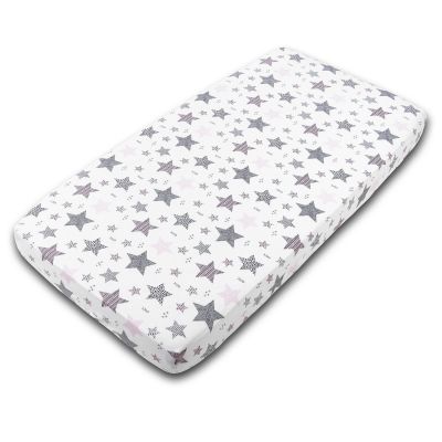 Despre Set 2 cearceafuri din bumbac cu elastic roata pentru patut 120x60 cm Kidizi Galaxy Grey Pink Stars