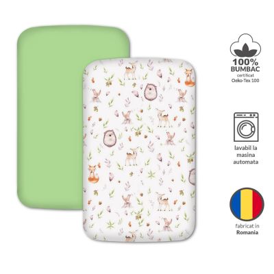 Despre Set 2 cearceafuri din bumbac cu elastic roata pentru patut cosleeper 90x50 cm Kidizi, Forest Joy