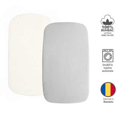 Despre Set 2 cearceafuri din muselina cu elastic roata pentru patut cosleeper 90x50 cm Kidizi grey, bumbac 100%