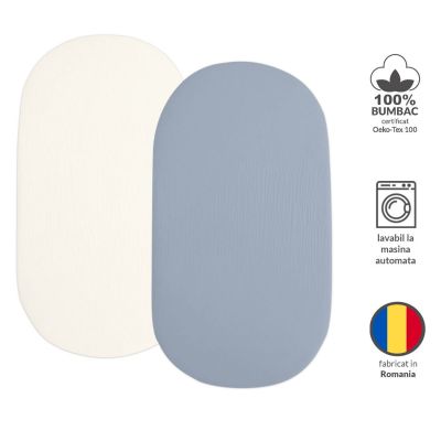 Despre Set 2 cearceafuri din muselina dubla cu elastic roata pentru landou sau cosulet de rachita Kidizi jeans, bumbac 100%