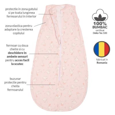 Realizati integral din bumbac 100% certificat, acesti saculeti sunt moi, confortabili si ideali pentru pielea fina a celor mici.