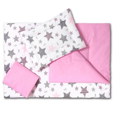 Despre Set lenjerie 5 piese din bumbac Kidizi Pink Stars, perna bebelus, plapumioara, aparatoare si cearceaf