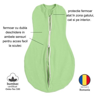 Despre Sistem de infasat cu fermoar dublu Kidizi SnugPod Green M, pentru bebelusi cu greutate de 3.8-7 kg, 0.5 tog