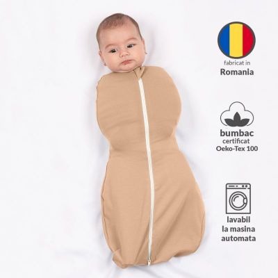 Design sigur, fara materiale libere – bebelusul ramane infasat corect si nu exista riscul ca sistemul sa se desfaca in timpul somnului.