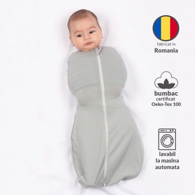 Despre Sistem de infasat cu fermoar dublu Kidizi SnugPod UP Grey M, pentru bebelusi cu greutate de 3.8-7 kg, 0.5 tog